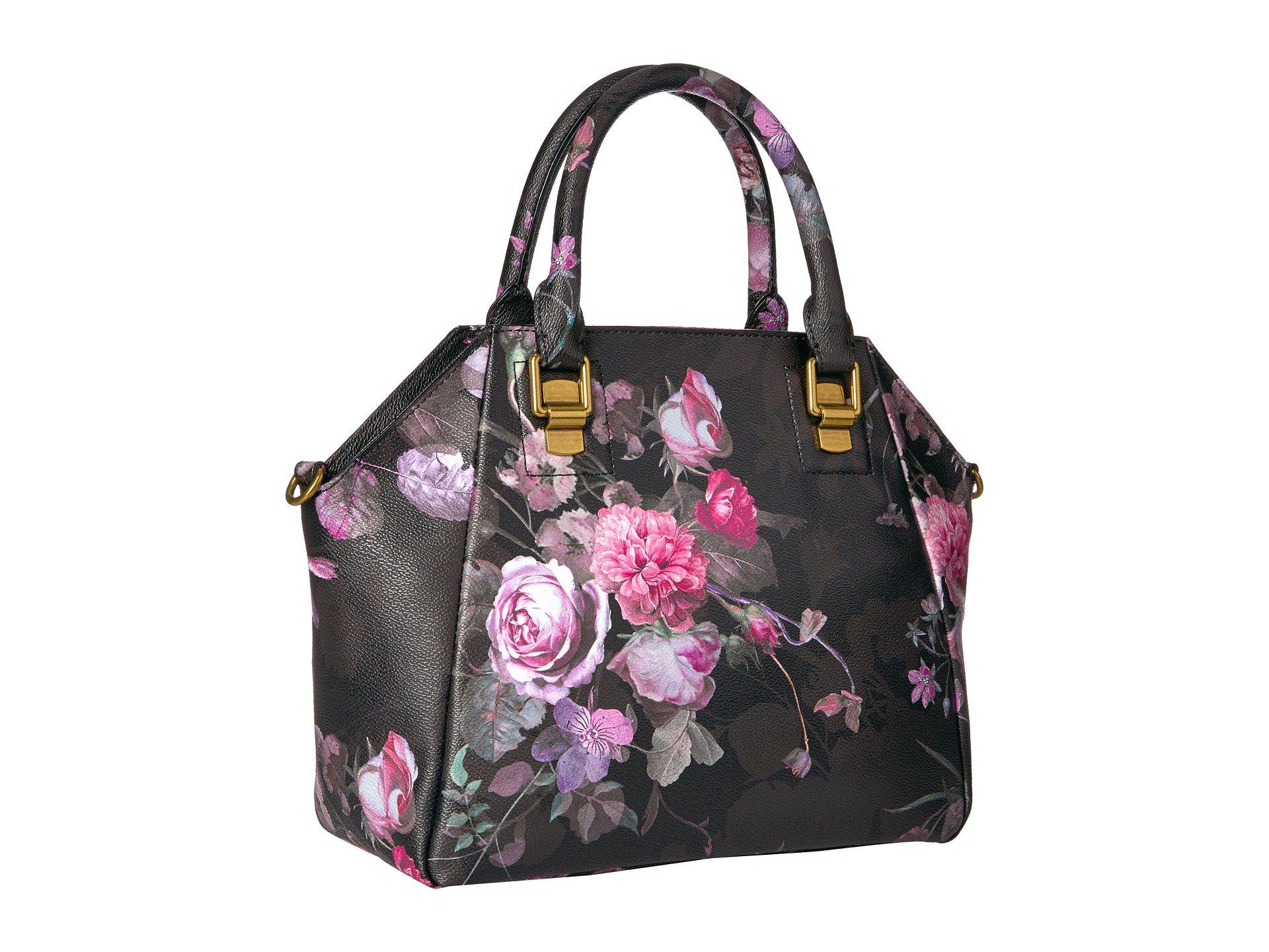 ELLIOTT LUCCA FARO CITY SATCHEL BLACK PURPLE PINK FLORAL